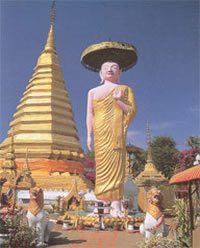 The Temple of Chom Sawan: It is Thai Yai temple which built on Myanmar works of art. The building of temple is composed of only wood which a church, house of Buddhist priests are perfect harmony to each other. The interior design inside temple is elaborately embellishment which handiwork of carving teak, beautifully color glasses are excellent craftsmanship. Many ancient objects are Luang Po San whose body is built from weaving bamboo priming with black lacquer and covering with gold leaves; moreover, ivory Buddha Image is Myanmar art. Furthermore ivory scripture was inscribed by Myanmar alphabets and a throne with four posts supporting a roof fills a marble Buddha Image. Located on Thung Kwang sub district away from the Phrae's city hall about 9 kilometers.